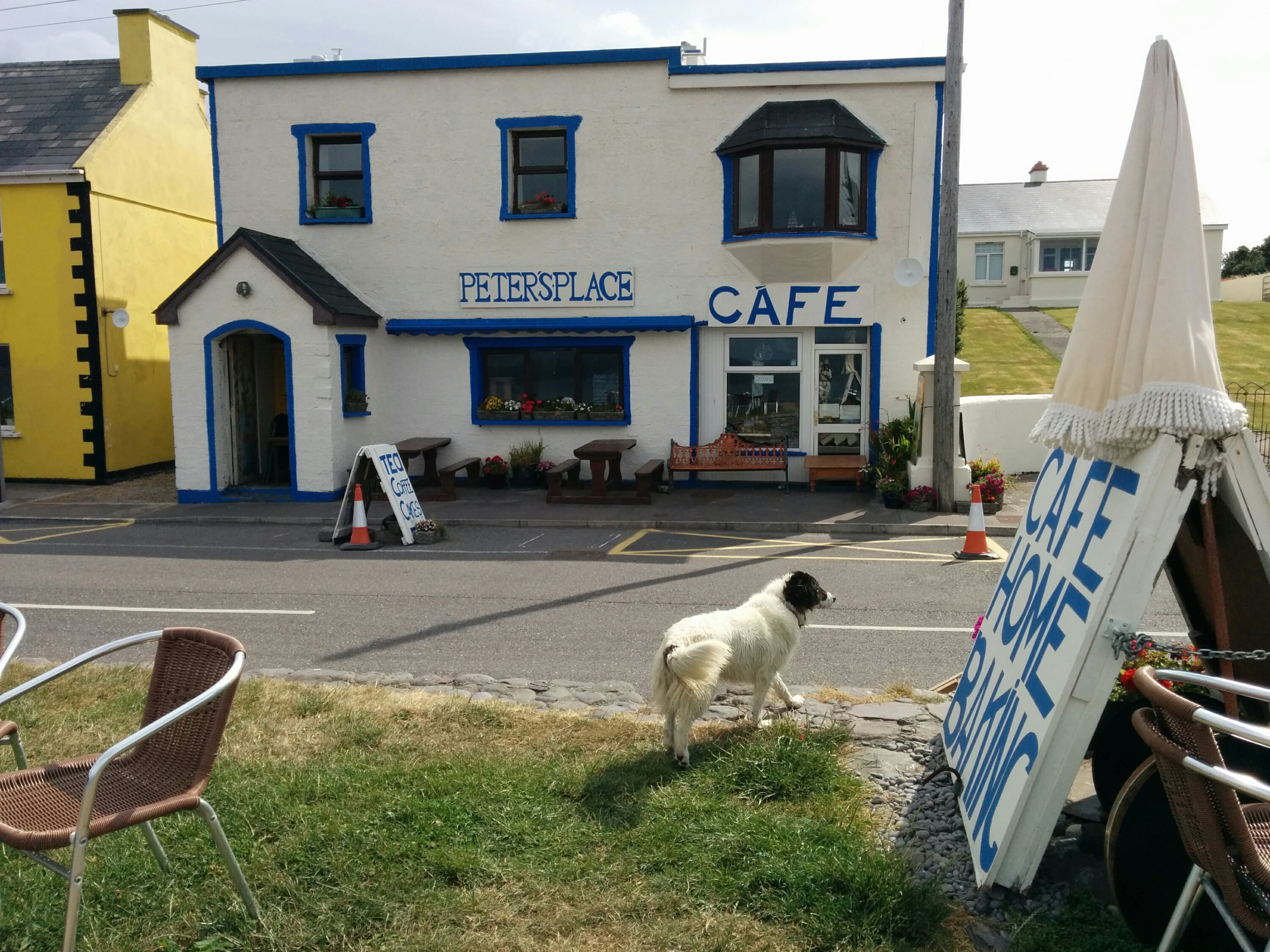 Auf den regelmäßigen Besucher Charlie Chaplin sind sie hier wirklich stolz. Das Foto stammt von gestern Abend. Heute morgen sind wir hier auf dem Weg nach Caherdaniel vorbei gekommen, da stapelten sich aktuelle Busladungen von Touristen. Die Straße N70 bildet den Ring of Kerry für Autos, und wir hatten heute oft Sicht darauf, es kommen wirklich viele Busse vorbei! Im Gegenzug lautet unsere Statistik an Begegnungen mit Wanderern heute: Entgegen kam uns genau eine Person. Vor uns liefen zwei Personen, die wir dann nicht weiter gesehen haben, nachdem wir eine längere Pause bei einem der vielen tollen Ausblicke gemacht haben.