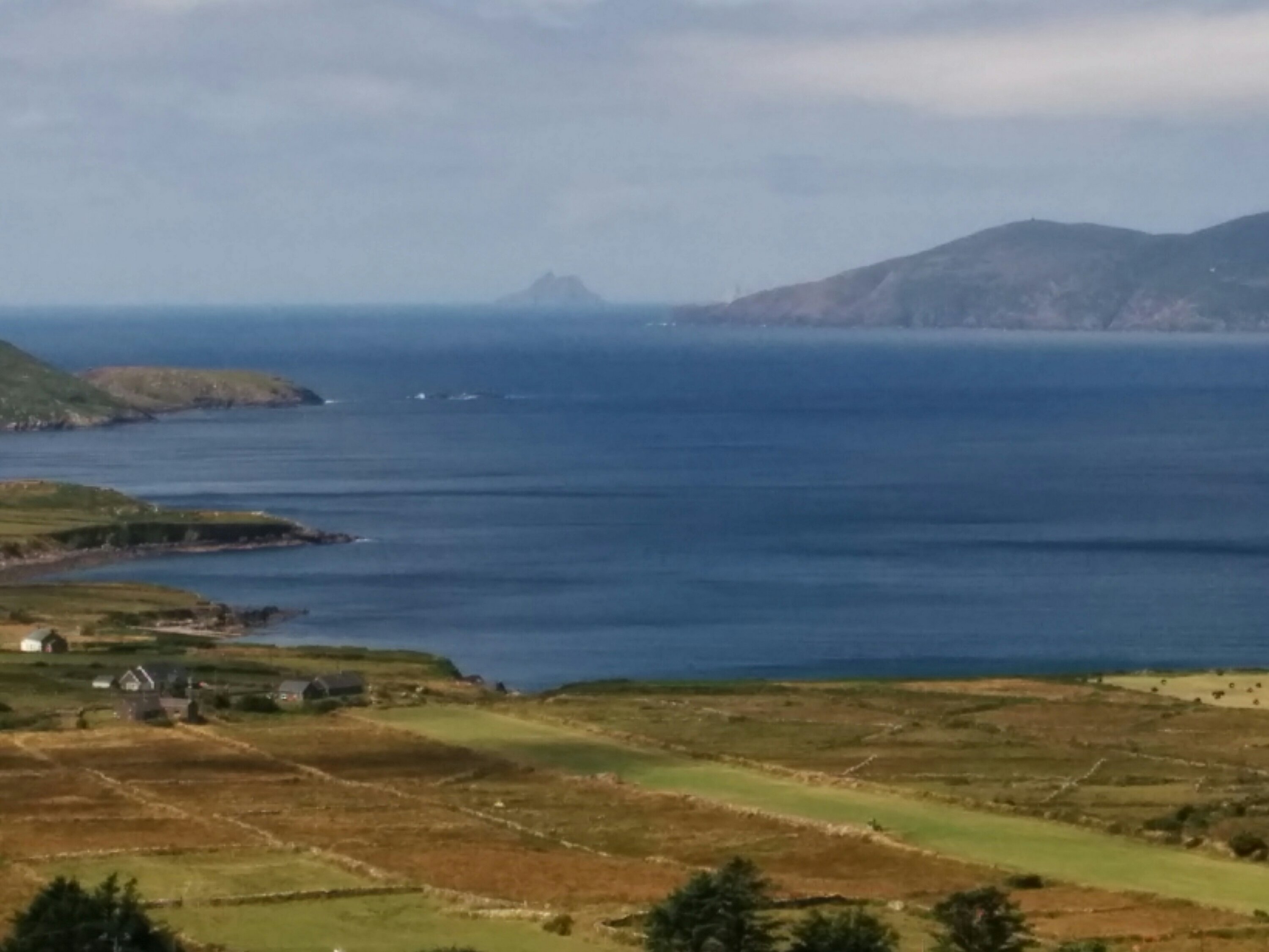 In der Ferne sieht man die Skellig Inseln. Hier wurden Szenen aus den neuen Star Wars Filmen 7 und 8 gedreht, es geht um den Ort, an dem Luke Skywalker ist. In unserem Reiseführer von 2010 steht zwar, dass ein Besuch lohnt, aber sehr mühselig sei. Mittlerweile sind die recht wenigen Plätze auf den Schiffen dorthin ein Jahr im voraus ausgebucht…