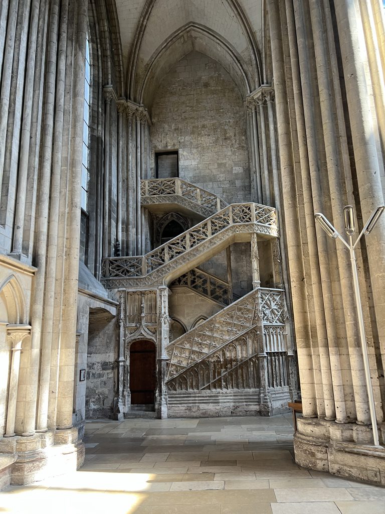 Weiterer Höhepunkt von Bayeux ist die Kathedrale. Diese wurde in normannischer Zeit begonnen, aber mit gotischen Elementen erweitert. Die Krypta wurde irgendwann zugeschüttet und dann später wieder freigelegt.