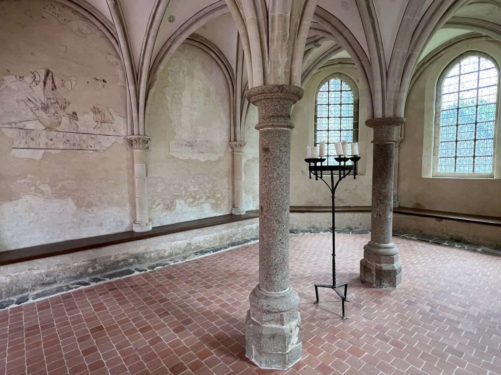 Auf dem Weg nach Bayeux unternahmen wir zunächst eine Wanderung in der Suisse Normande, erneut eine Empfehlung aus unserem Reiseführer. Wir hatten die 2022er Auflage zur Normandie von Reise Know-how, sowie eine Ausgabe des DuMont Kunstreiseführers aus den 80er Jahren, der für die Orte mit viel älteren Gebäuden immer noch bestens geeignet war.